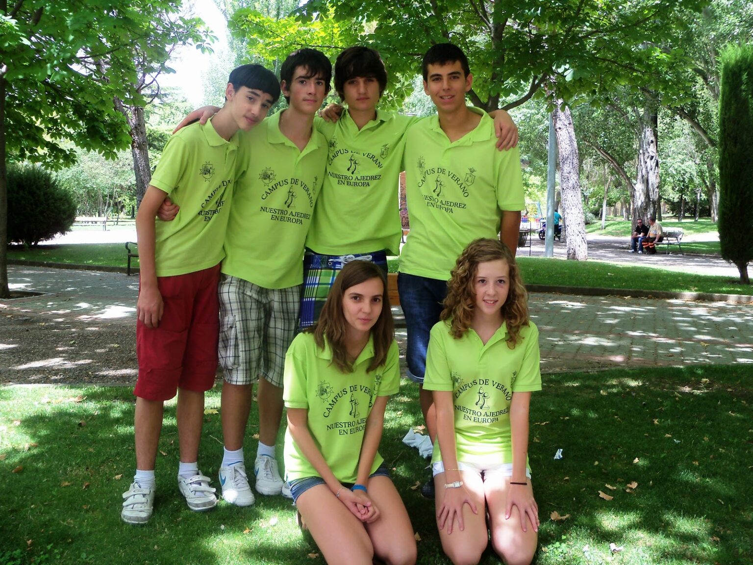5 de los miembros del equipo junto a su entrenador en el regional por equipos sub-16 celebrado en Cuenca este verano El próximo miércoles se producirá la llegada del equipo sub-16 de NUESTRO AJEDREZ EN EUROPA a la