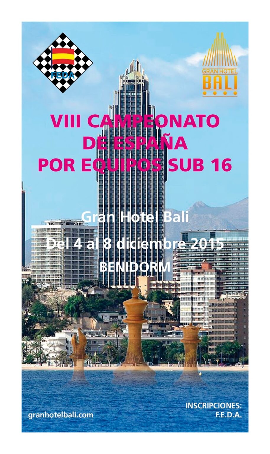 El próximo viernes 4 de diciembre comienza en el Hotel Bali de Benidorm el VIII CAMPEONATO DE ESPAÑA POR EQUIPOS DE CLUB SUB-16. Hasta hoy domingo son 24 los equipos que han solicitado su inscripción, incluyendo los 5 de Castilla-La