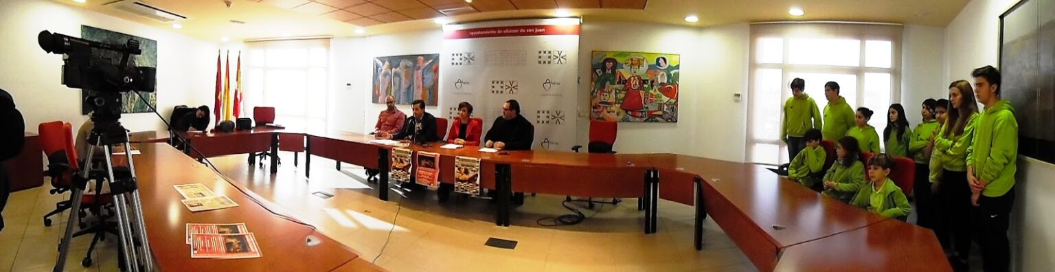 Imagen panorámica de la rueda de prensa en el ayuntamiento de Alcázar de San Juan La alcaldesa de Alcázar, Rosa Melchor, y el alcalde de Villafranca, Julián Bolaños, junto a los responsables del proyecto: Herminio Herráiz y Félix Toribio. Foto: