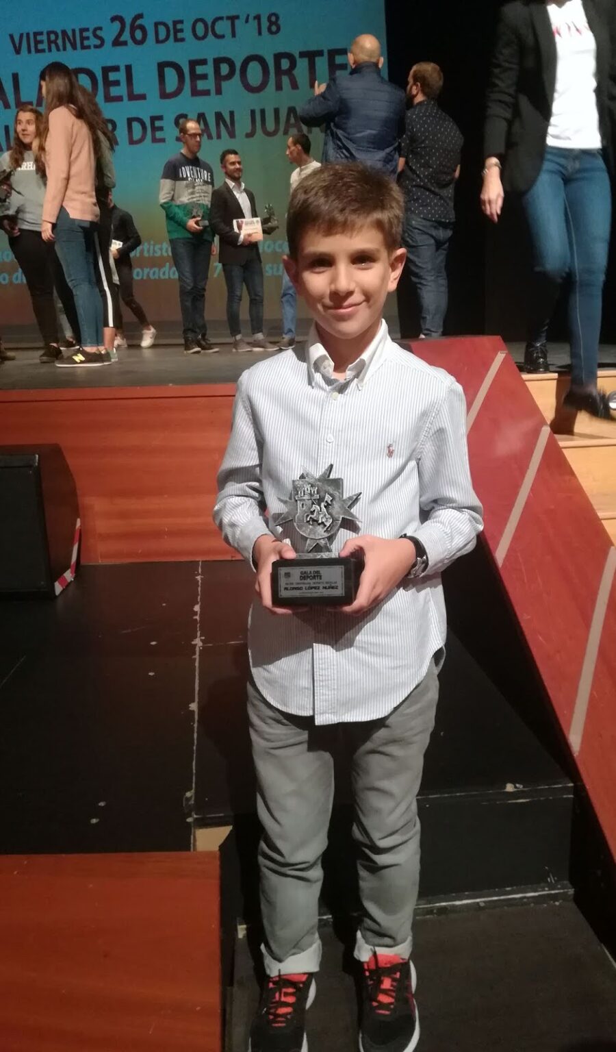 Alonso con su premio en la Gala del Deporte de Alcázar Entre el 4 y el 15 de noviembre se disputará en Santiago de Compostela los campeonatos del mundo de las categorías sub-8, sub-10 y sub-12. Serán 200 los chicos