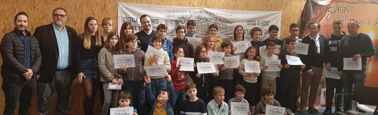 Participantes, autoridades y monitores en la clausura Acaba 2019 y con él han culminado los primeros 12 años de Nuestro Ajedrez en Europa. Corría el año 2007 cuando los ayuntamientos de Alcázar de San Juan y Villafranca de los Caballeros