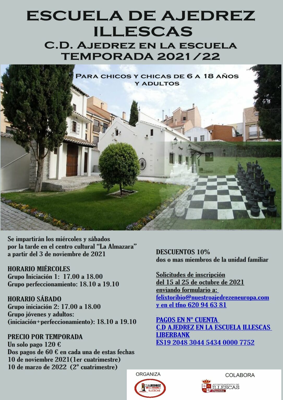 El centro cultural «La Almazara» acogerá, a partir del próximo mes de noviembre, la nueva escuela deportiva de ajedrez de Illescas, organizada por el C.D. Ajedrez en la Escuela-Illescas. El proyecto para la puesta en marcha de esta escuela