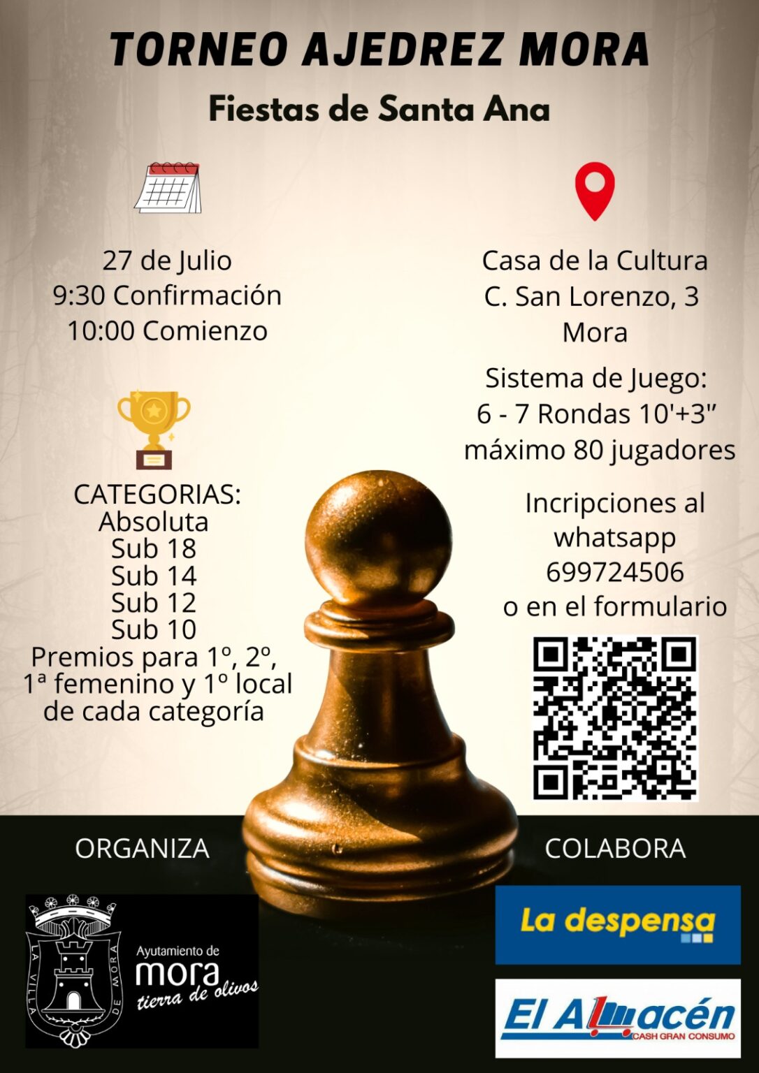 MORA Y CAMUÑAS CELEBRAN SUS TORNEOS DE AJEDREZ EL 27 Y 28 DE JULIO Aquí tenéis la información de dos torneos que se celebrarán en el fin de semana del 27 y 28 de julio. y en los que os animo a participar. En primer lugar, el torneo Leer más » 06/07/2024