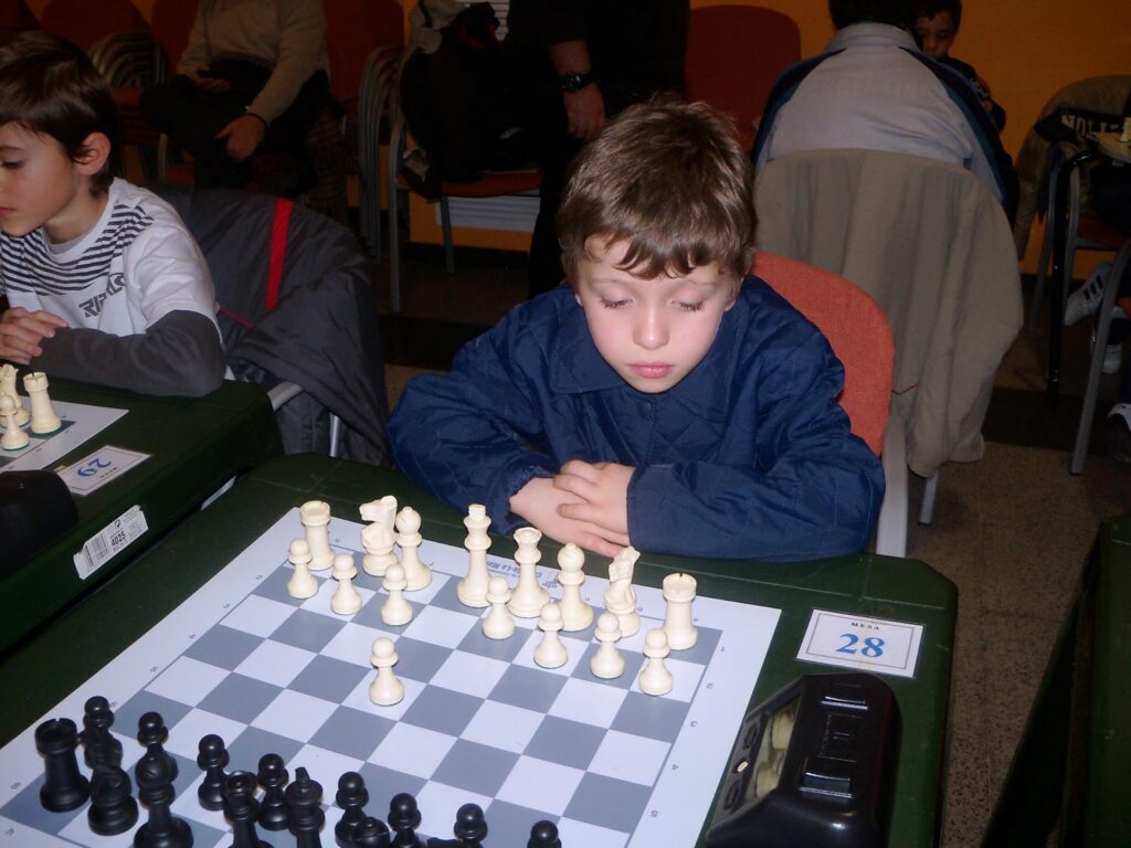 Jesús Romo de 7 años en su primera partida en competición