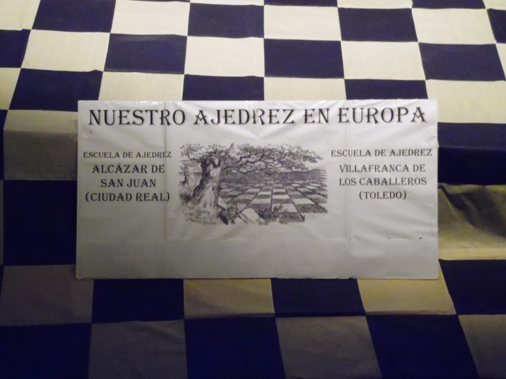 Tercer día de campus en Alcázar. Hoy, algunos grupos de iniciación, han disfrutado de juegos sobre el tablero gigante. De la mano de sus monitores, nuestros alumnos se han convertido en piezas en movimiento, teniendo que cumplir unos determinados objetivos sobre el tablero mudo.