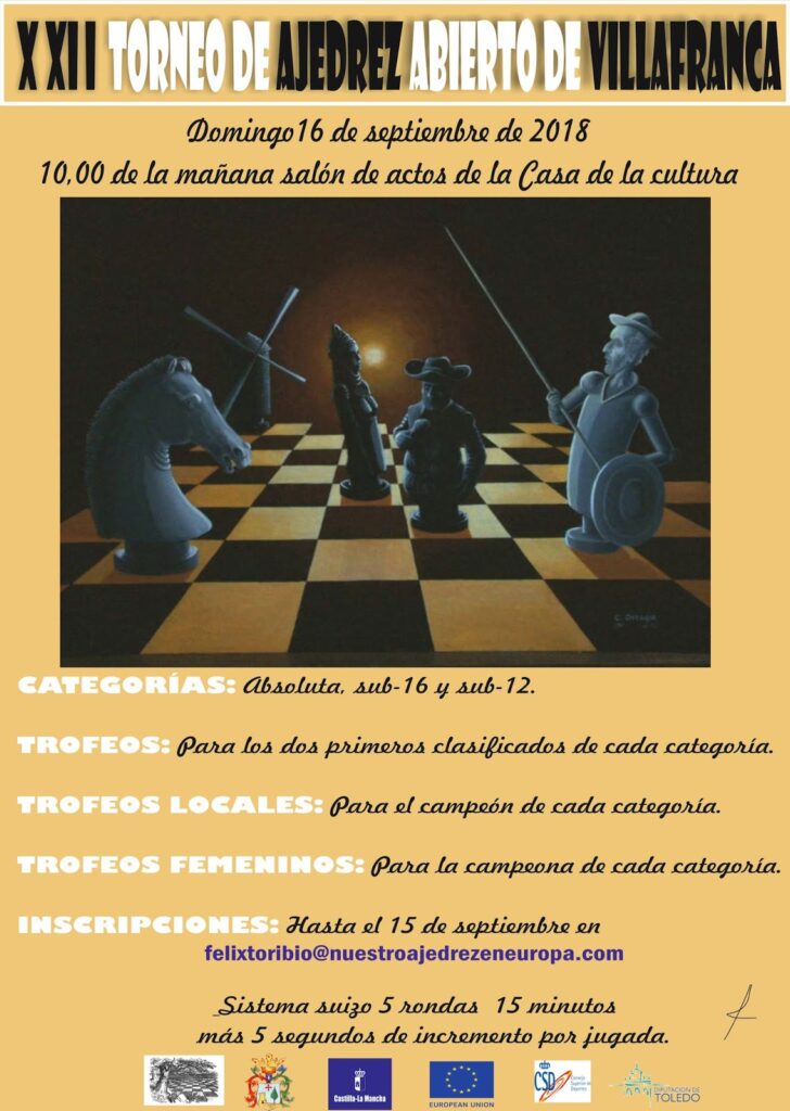 recibirá de nuevo a los ajedrecistas aficionad@s de la comarca manchega para celebrar la XXII edición del abierto de feria.