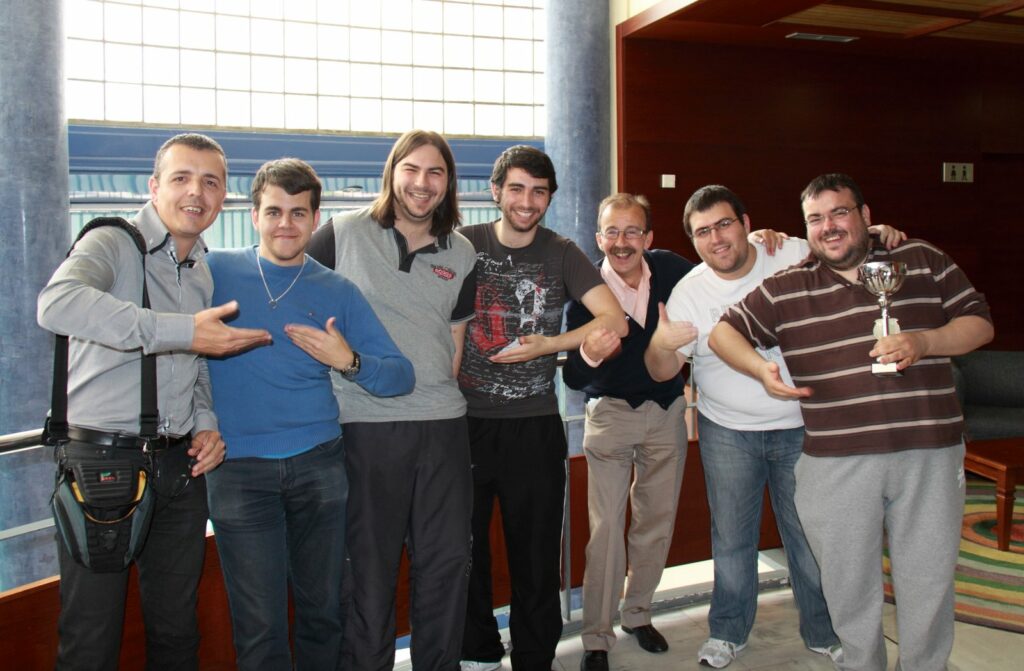 Imagen del equipo del Club de Ajedrez Talavera junto a su pte.