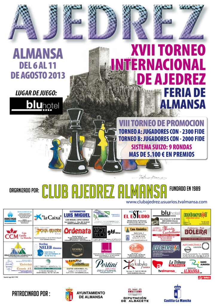 Se vuelve a repetir una buena actuación de nuestros jugadores en el internacional de Almansa. La octava edición del torneo de promoción en el grupo B finalizaba con Santiago Talavera en la 3ª posición, con 7 puntos sobre 9, con Carlos Álvarez en la 11ª plaza e Isaac Lozano en el puesto 26º, ganando 34 puntos de elo. Los otros 4 jugadores de nuestros clubes que han participado también han obtenido buenos resultados: